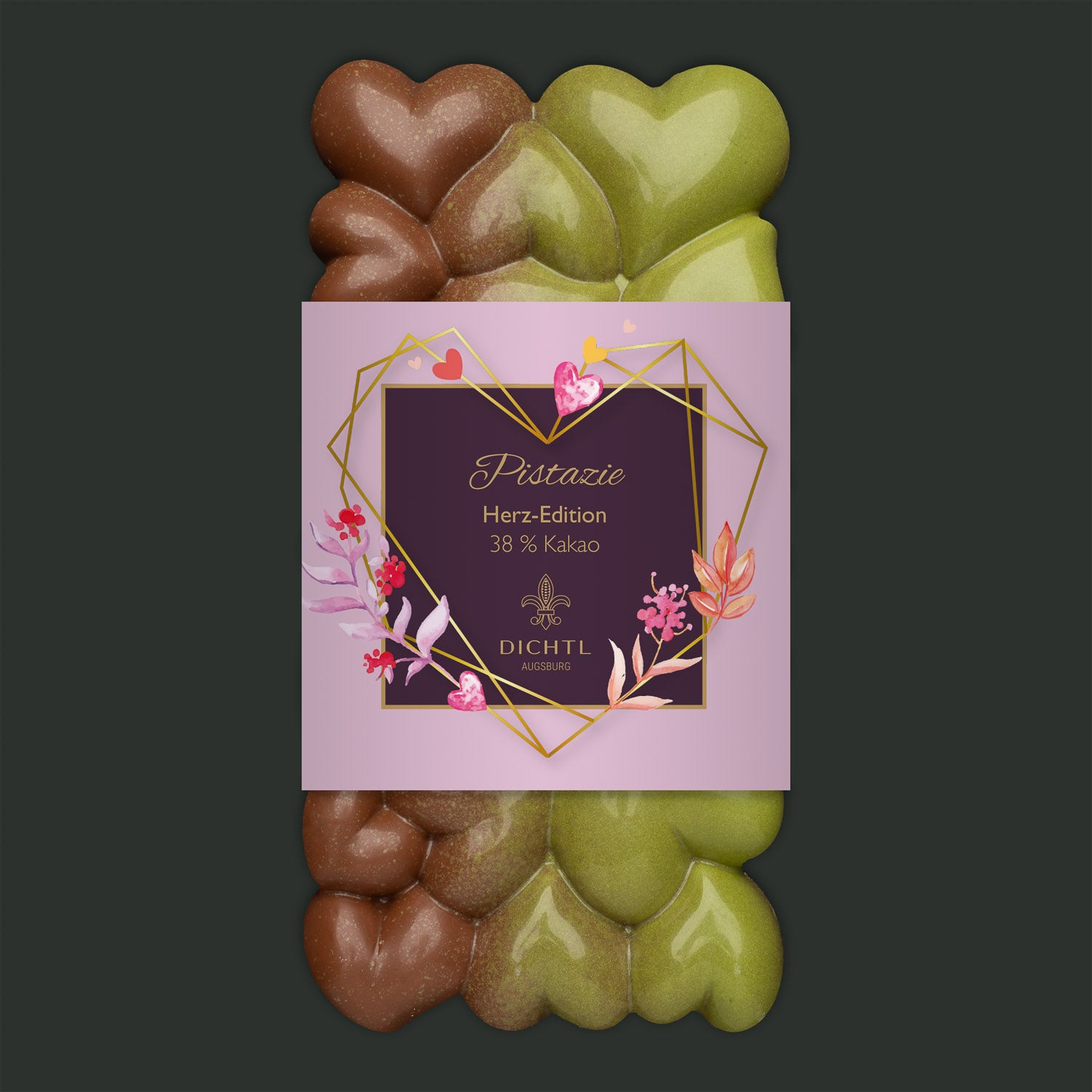 - Vollmilchschokolade mit Pistazien in ihrer schönsten Form